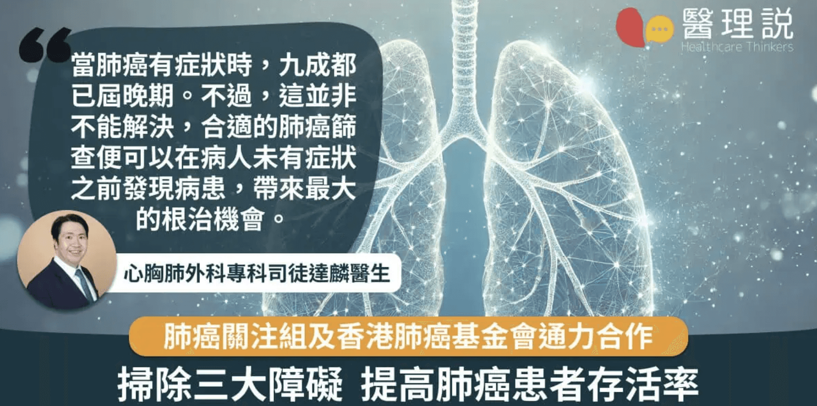 肺癌為本港最常見癌症,患者早期的病徵不明顯,逾半數個案確診時已屆第4期,吸煙人士患癌的風險更高25倍,進行早期篩查顯得尤其重要。