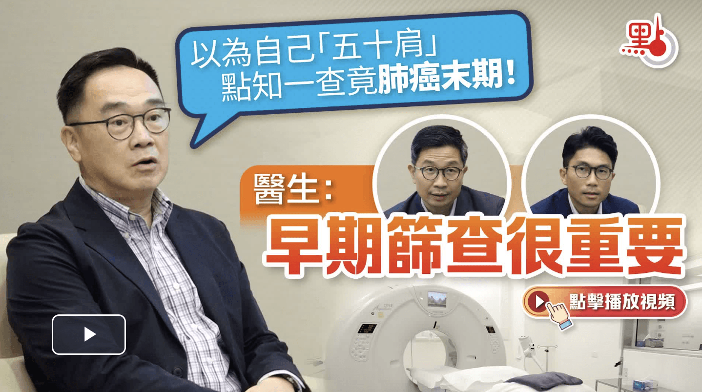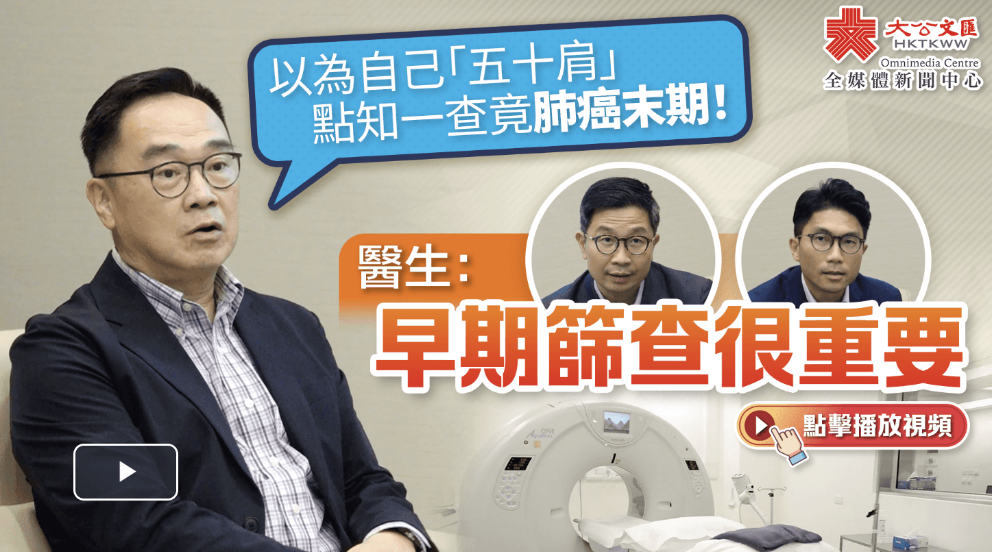 根據癌症資料統計中心的數字,在2021年的肺癌新症中,逾半數確診時已是第四期。現年60歲的吳先生前年出現肩膀疼痛,其後確診肺癌晚期,此前完全沒有肺癌病徵,提醒大家應盡早接受檢查或篩查。